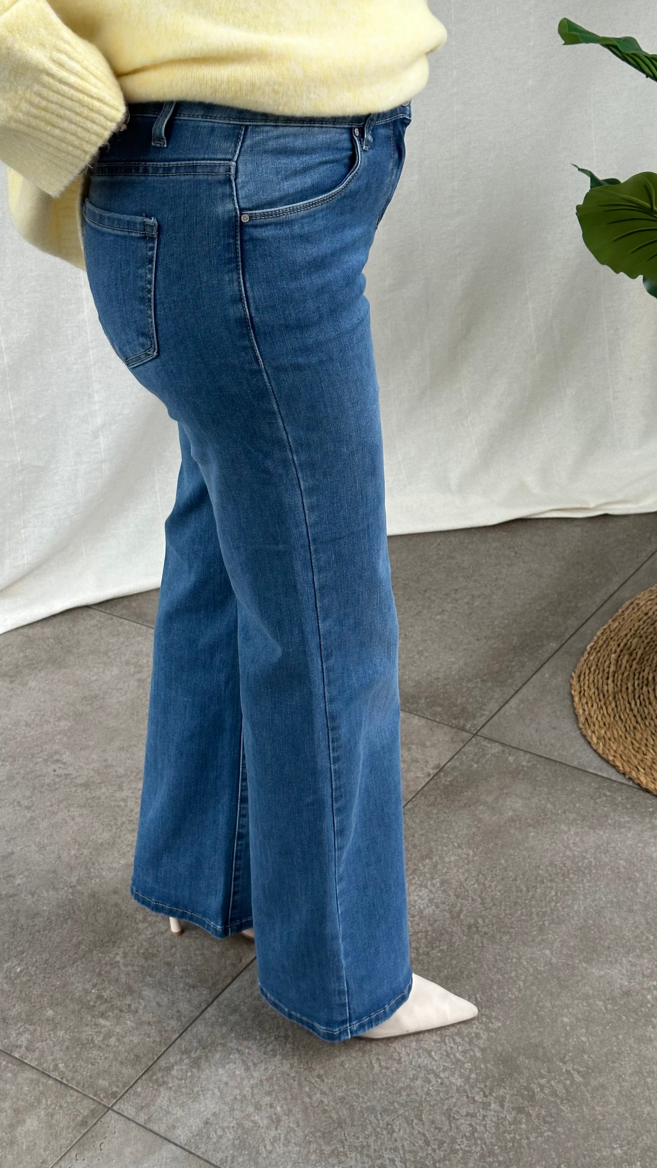 Blauwe casual jeansbroek met rechte broekspijpen voor een tijdloze look. De broek is stretchy waardoor het lekker comfortabel draagt.