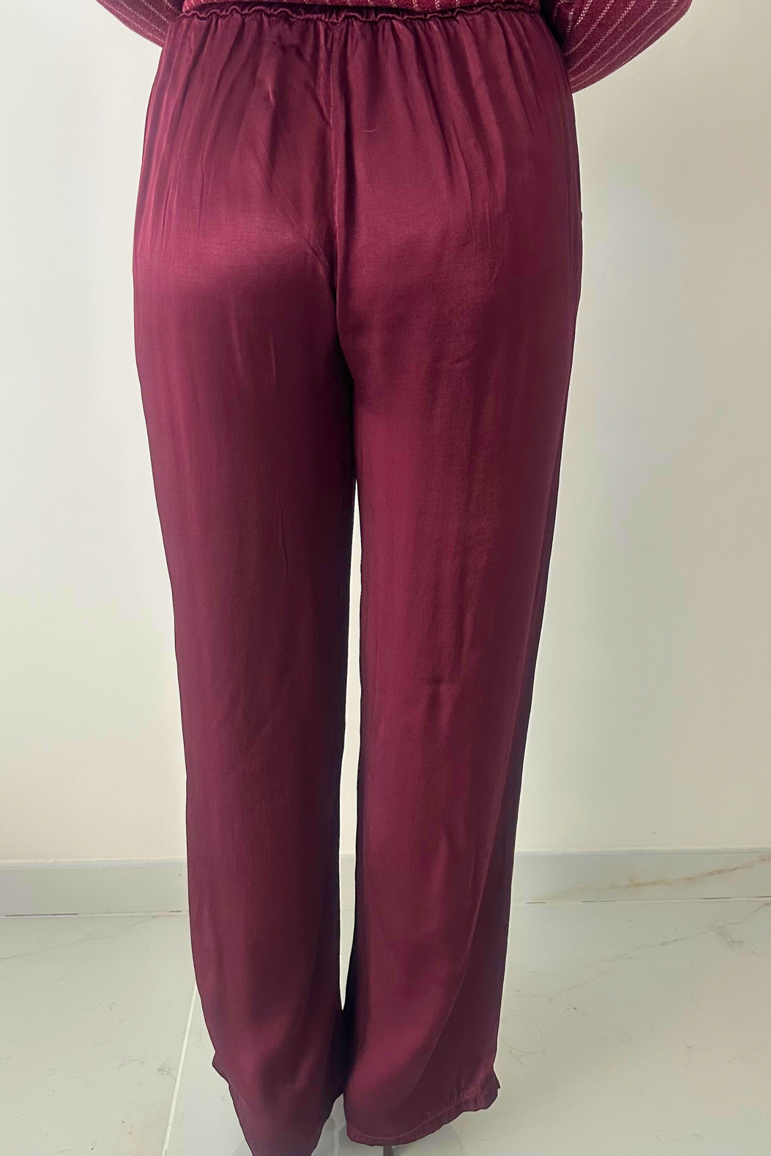 Bordeaux satijn broek