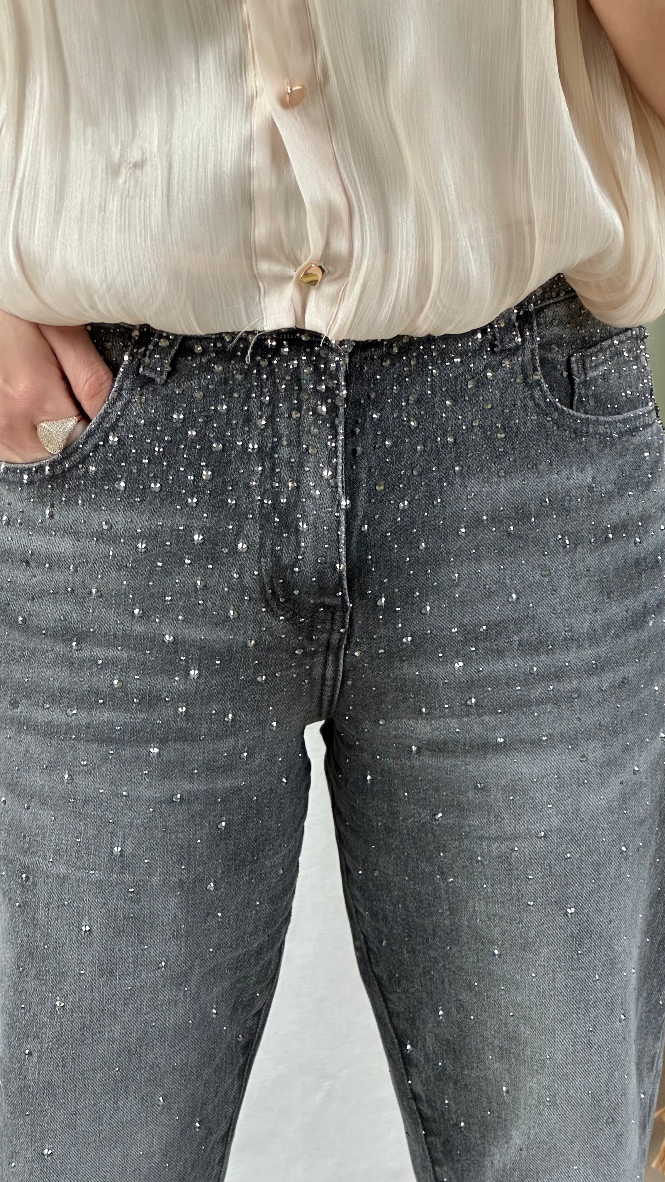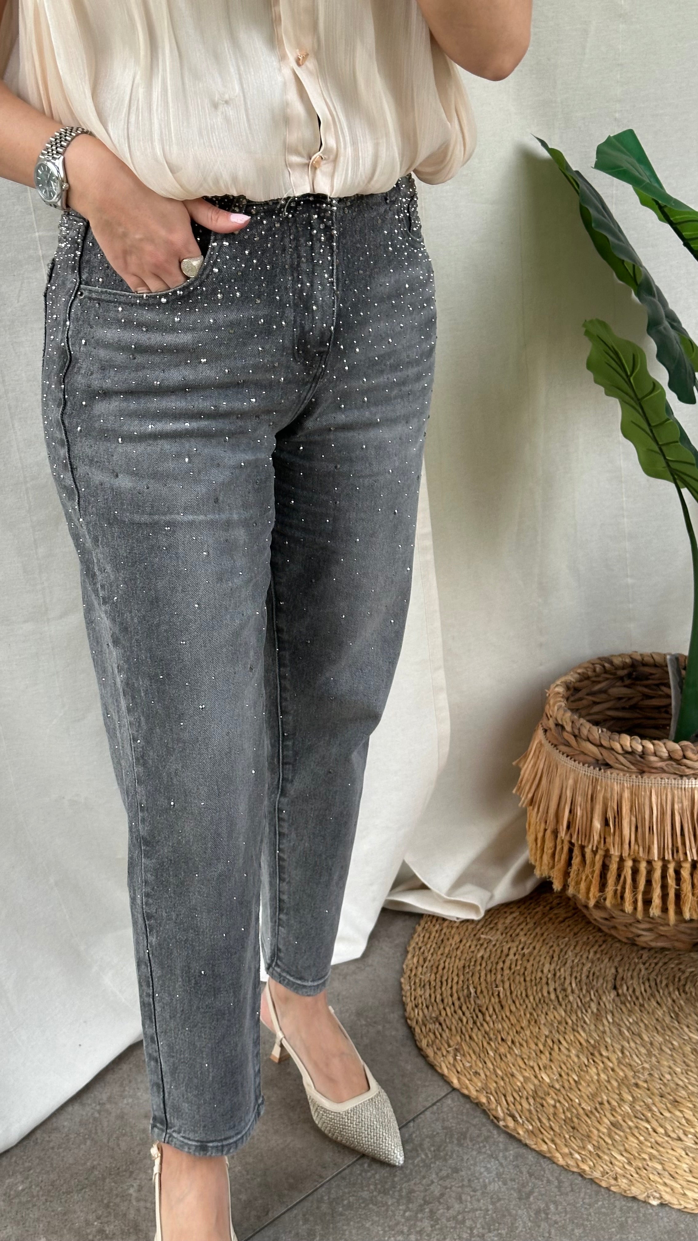Grijze glitter jeans LUNA
