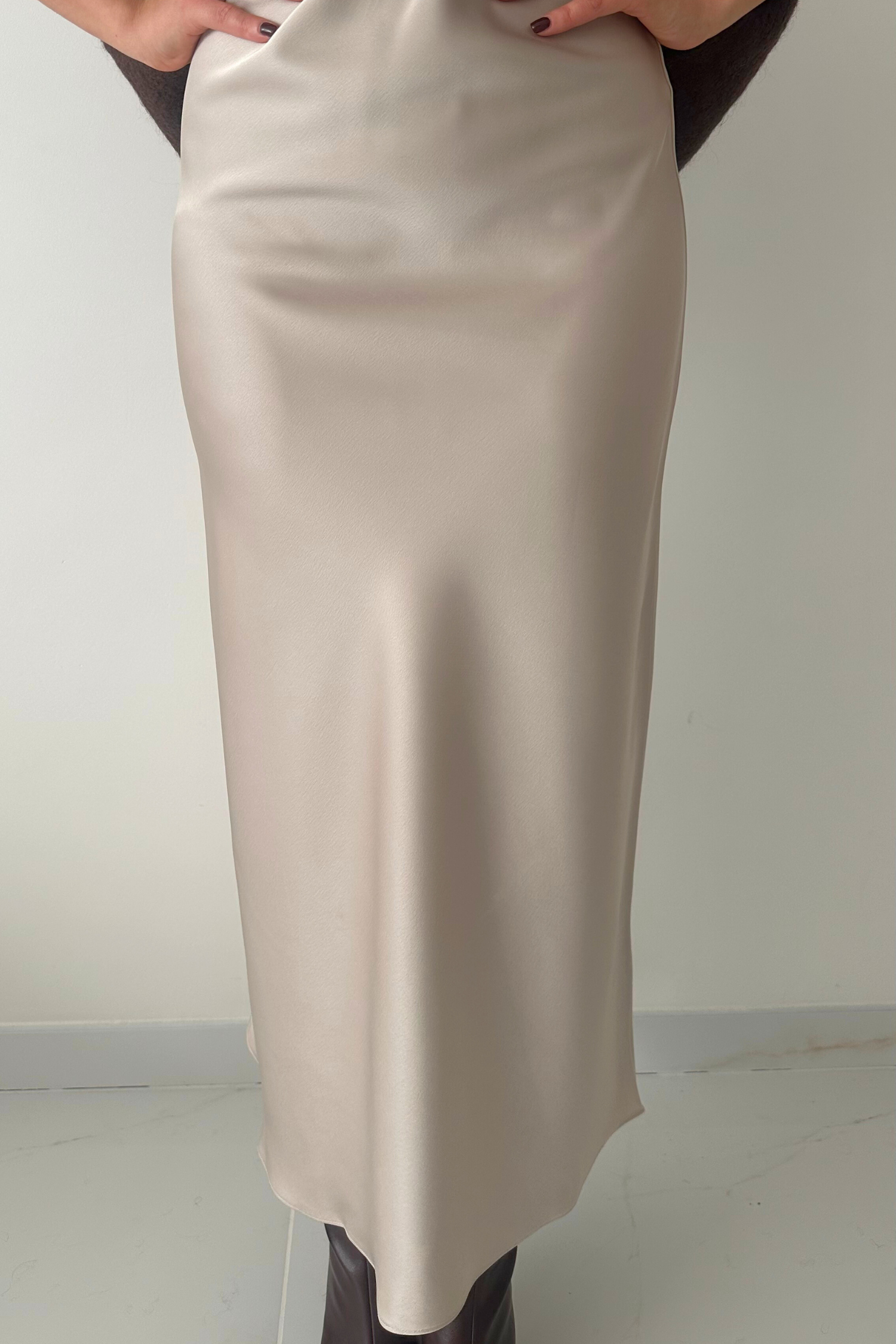 Lange ecru satijnen rok
