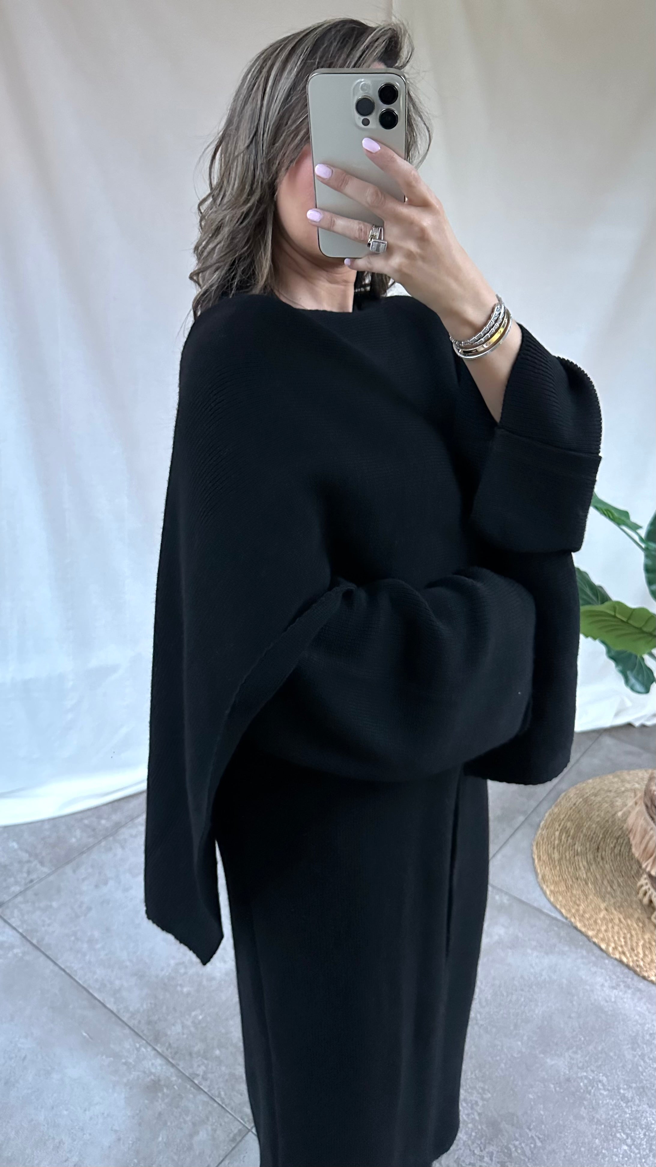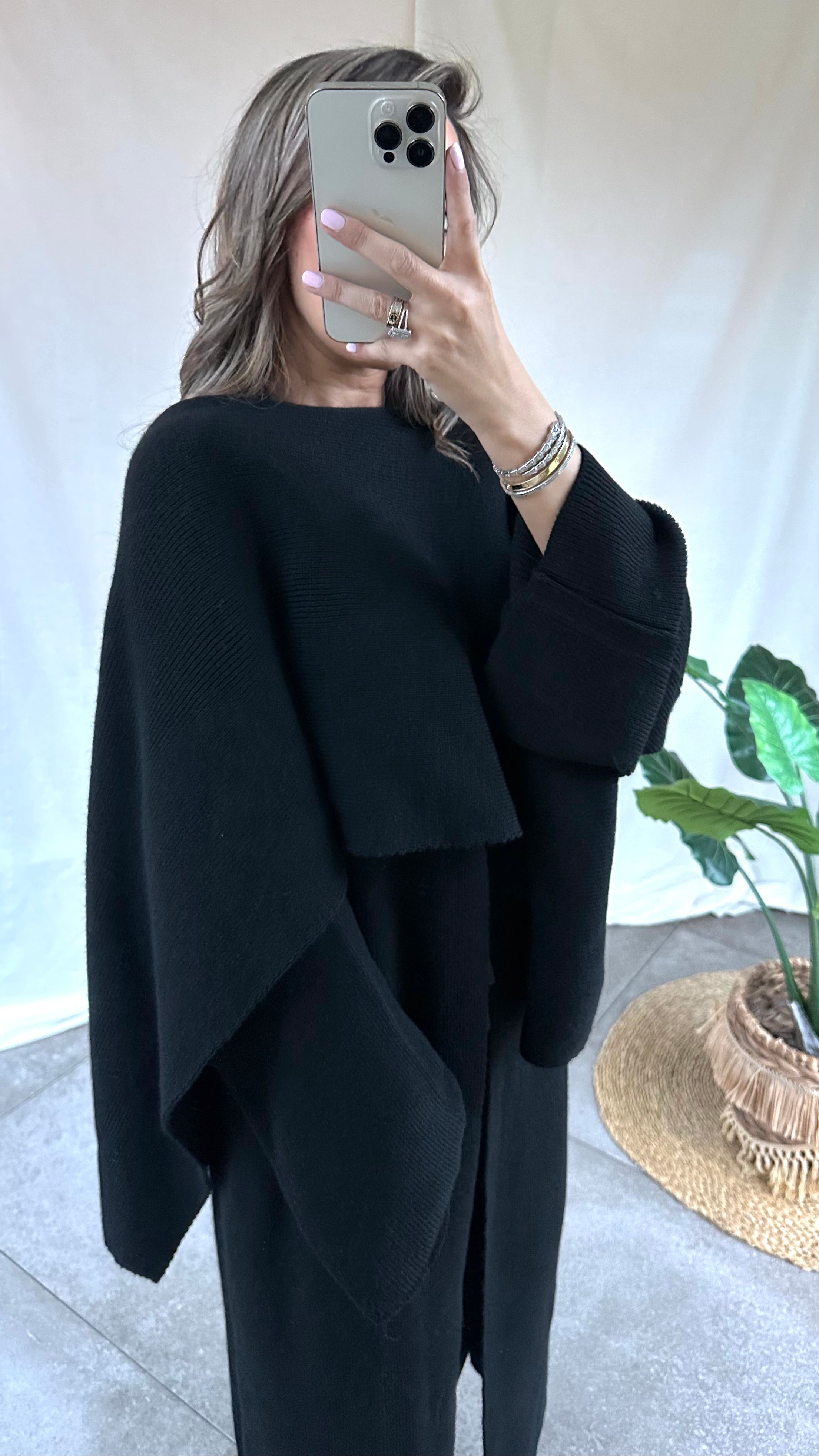 Zwarte cape trui KENZA